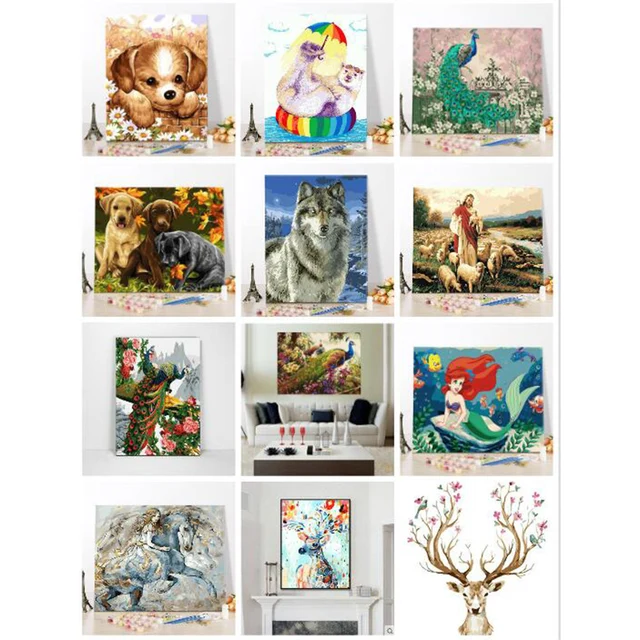 Diy Minyak Lukisan Dengan Angka Abstrak Cat Akrilik Hewan Berwarna